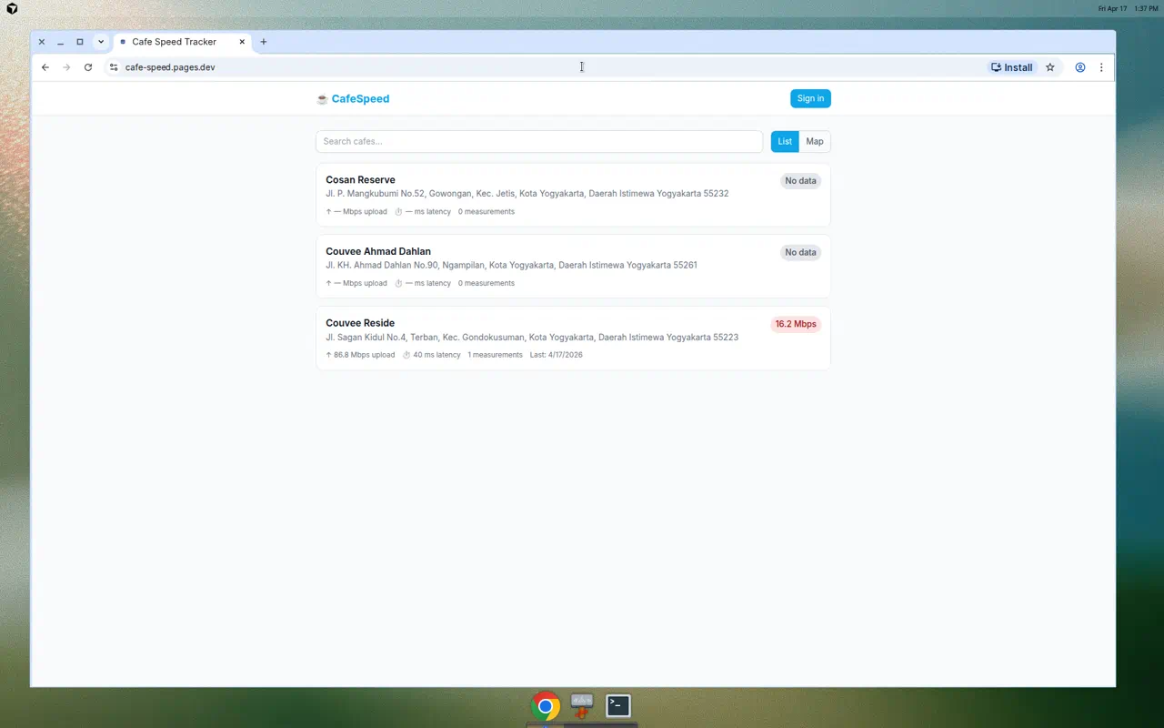 If you’re a remote worker, digital nomad, or anyone who regularly works from cafes, I invite you to try CafeSpeed. Submit measurements from your favorite cafes, discover new workspaces, and help build a trusted database of real internet speeds.